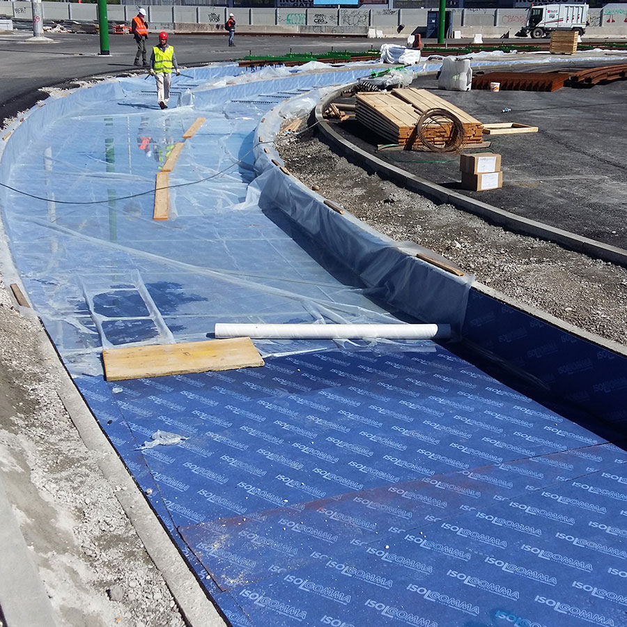 The solution adopted involved the insertion of an anti-vibration mat MATRACK 30 AVC 500 and MATRACK 15 AVC 500 applied under the concrete casting, allowing for the mitigation of vibrations in a context of particular interest.
