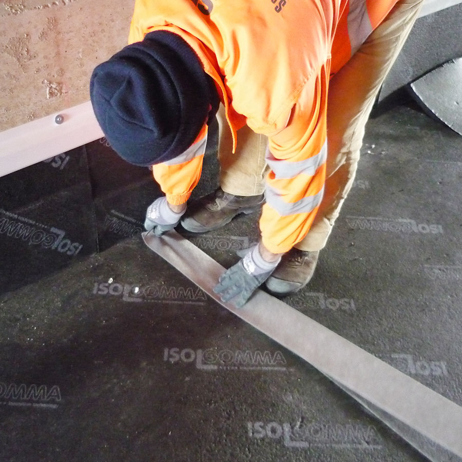 During installation, the mats were joined using STIK joint tape and Z-shaped protectors on the vertical heads. This method of application produced a highly insulated floating track system.