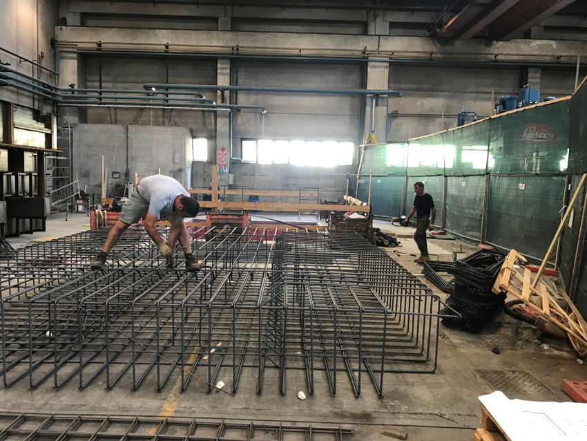 The considerable vibrations transmitted by a hammer during the work cycles generated significant noise to the surrounding working environment. There was the need to solve the problem by housing the machinery on an inertial platform to isolate it from the rest of the factory.