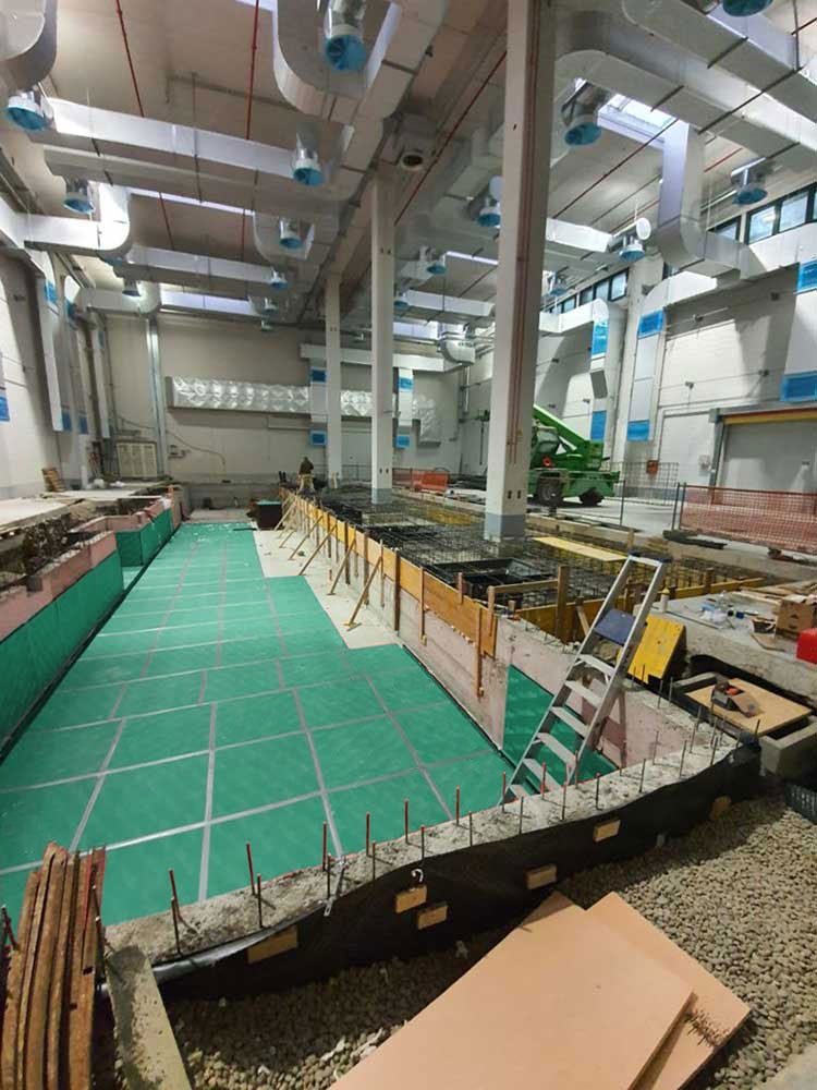 During the expansion of the production area of the Daily Press Centre of Erbusco, in order to isolate the variable vibrations produced by the printing press to other working situations and adjacent urban areas, MEGAMAT 25/500 and MEGAMAT 50/500 vibration damping mats were used in combination.