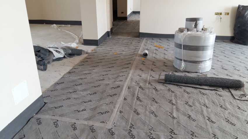 The owner needed to acoustically insulate the floors of residential buildings with low thickness products.